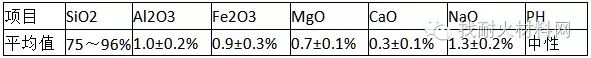 外观为灰色或灰白色粉末﹑耐火度>1600℃。容重:200~250千克/立方米。